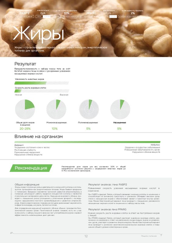 Этот ДНК анализ показывает, к каким физическим нагрузкам человек расположен генетически, а также какие продукты (содержащие определенные элементы) лучше употреблять в пищу. У каждого человека свои цели, кто-то хочет просто сбросить лишний вес, кто-то увеличить силу мышц, а кто-то нарастить огромные мускулы. Для получения максимальной отдачи от тренировок мы рекомендуем пройти наш генетический тест для фитнеса в Демидове.
